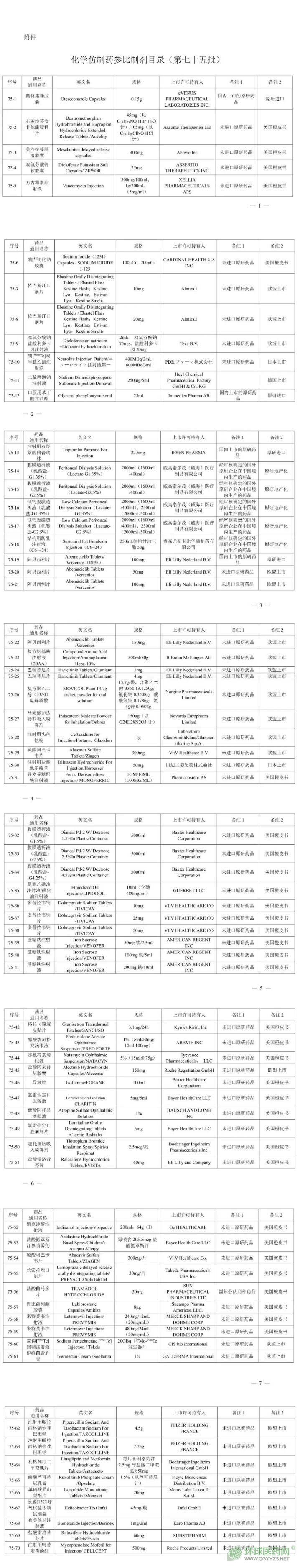 經(jīng)國(guó)家藥品監(jiān)督管理局仿制藥質(zhì)量和療效一致性評(píng)價(jià)專家委員會(huì)審核確定,現(xiàn)發(fā)布仿制藥參比制劑目錄(第七十五批)。