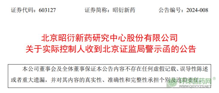 近日,北京昭衍新藥研究中心股份有限公司發(fā)布公告,公司于2024年2月8日收到中國證券監(jiān)督管理委員會(huì)北京監(jiān)管局出具的《關(guān)于對(duì)馮宇霞、周志文采取出具警示函措施的決定》,因信息披露不及時(shí),公司實(shí)際控制人收到了警示函。