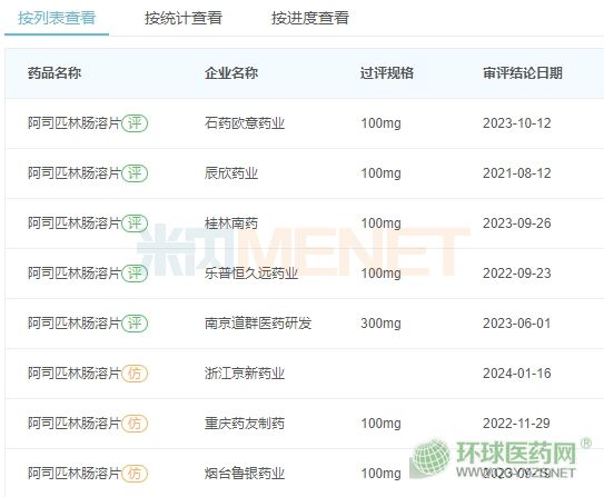 截至目前,國內已有辰欣藥業(yè)、樂普恒久遠藥業(yè)、重慶藥友制藥、南京道群醫(yī)藥、煙臺魯銀藥業(yè)、桂林南藥、石藥歐意藥業(yè)、浙江京新藥業(yè)8家企業(yè)的產品過評/視同過評,阿司匹林腸溶片已滿足集采的入圍“門檻”。