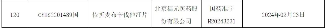 3月1日,國家藥品監(jiān)督管理局NMPA官網顯示,福元醫(yī)藥的依折麥布辛伐他汀片獲批上市,視同通過一致性評價。該產品為國內首仿、首家過評。