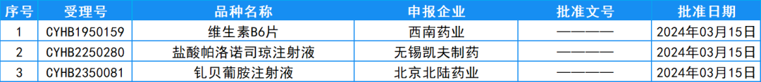 2024年3月19日,國家藥監(jiān)局官網(wǎng)發(fā)布藥品批準(zhǔn)證明文件,本批共3品種、3品規(guī)藥品補(bǔ)充申請獲批,通過一致性評價(jià)。