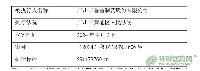 近日,廣州市香雪制藥股份有限公司通過中國執(zhí)行信息網(wǎng)公示信息查詢得知公司被申請(qǐng)法院強(qiáng)制執(zhí)行,具體情況如下: