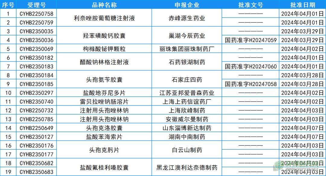 2024年4月7日、8日和9日,國家藥監(jiān)局官網(wǎng)連續(xù)發(fā)布藥品批準(zhǔn)證明文件,共12品種、19品規(guī)藥品補(bǔ)充申請獲批,通過一致性評價。