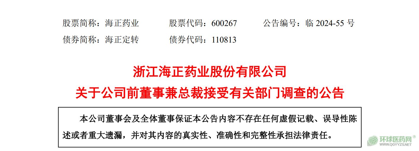 4月30日,海正藥業(yè)披露消息,公司前董事、前總裁李琰在公司代理業(yè)務(wù)中涉嫌貪污罪、職務(wù)侵占罪、受賄罪、非國(guó)家工作人員受賄罪,目前相關(guān)部門正在調(diào)查過(guò)程中。