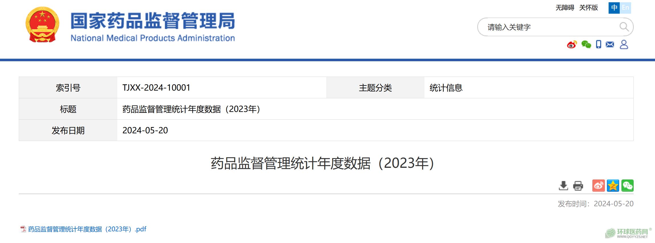 5月20日,國家藥監(jiān)局發(fā)布《藥品監(jiān)督管理統(tǒng)計年度數(shù)據(jù)(2023年)》。