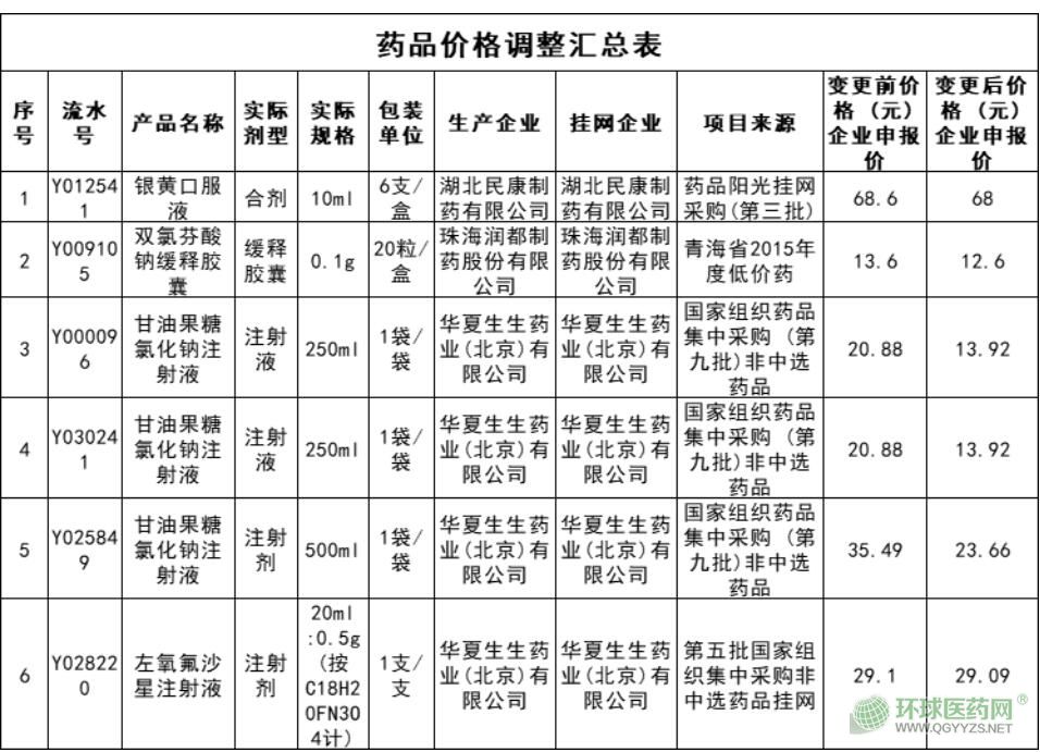 《通知》指出,湖北民康制藥有限公司、珠海潤都制藥股份有限公司、華夏生生藥業(yè)(北京)有限公司3家企業(yè)申請對6個藥品的價格進行調(diào)整。