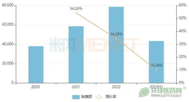 米內(nèi)網(wǎng)數(shù)據(jù)顯示,近年來(lái)噴他佐辛注射液在中國(guó)公立醫(yī)療機(jī)構(gòu)終端的銷售額均以兩位數(shù)的增速增長(zhǎng),2022年接近8億元,2023年上半年超過(guò)4億元。