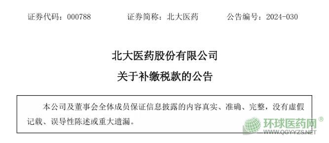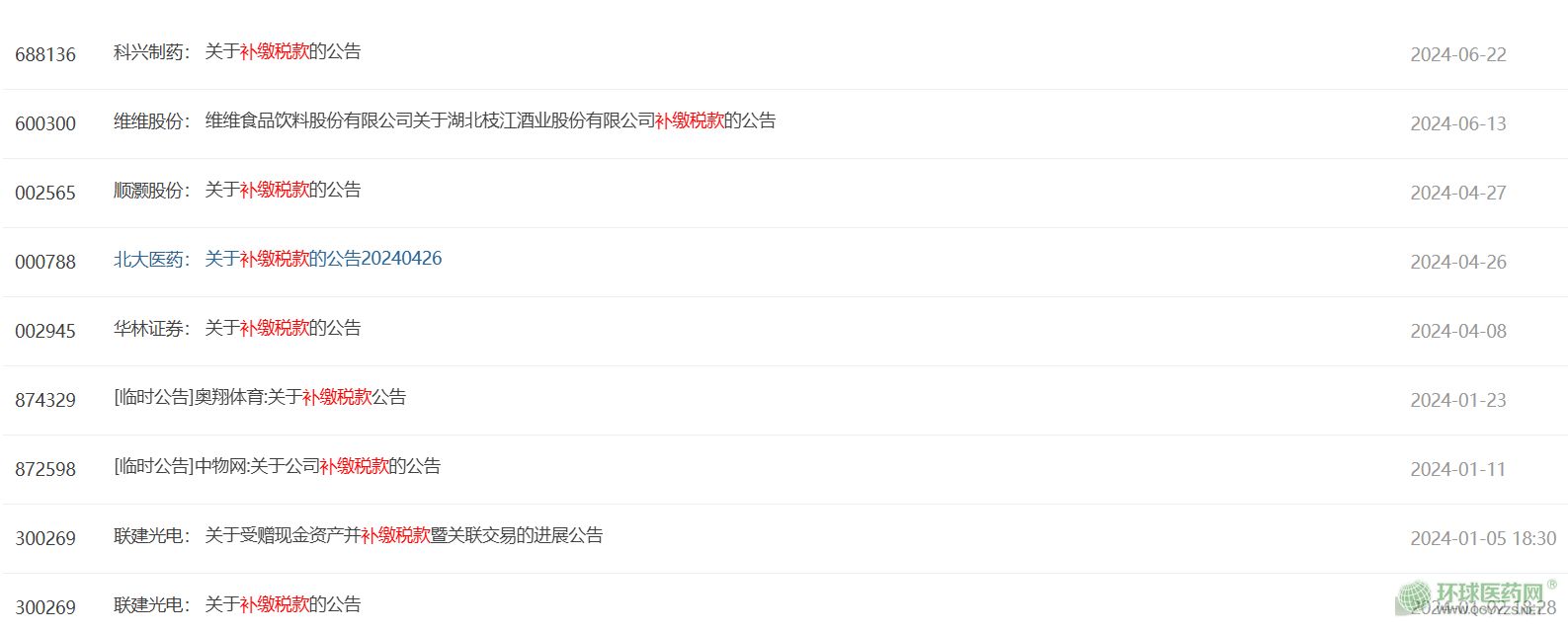 在上述政策的影響下,2024年已有多家上市企業(yè)發(fā)布了補(bǔ)繳稅款的正式公告,其中包括科興制藥和北大醫(yī)藥,具體如下: