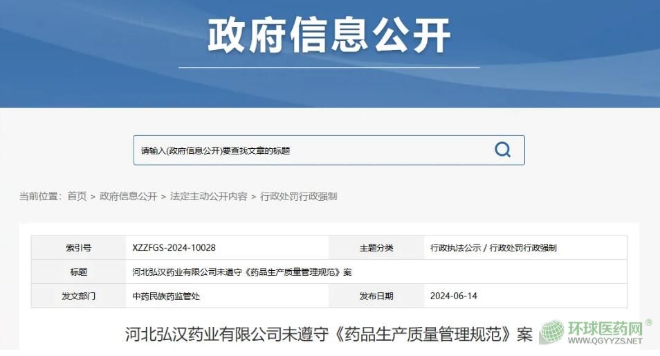 回顧該企業(yè)歷史,2024年01月16日,河北藥監(jiān)局發(fā)布了中藥民族藥監(jiān)管處2023年第四季度行政檢查情況,共計(jì)60家藥企接受了檢查,其中59家基本符合要求,僅1家企業(yè)河北弘漢藥業(yè)有限公司不符合要求,不知道本次的處罰是否與該次檢查有關(guān)。
