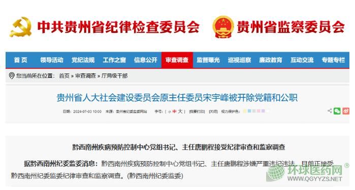 就在宋宇峰被雙開的前一天,貴州省衛(wèi)生系統(tǒng)還有1名縣處級干部被查。