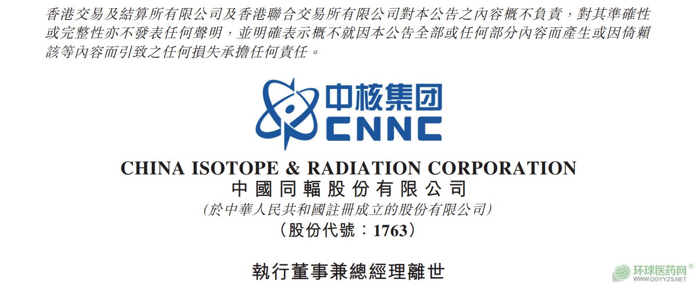 7月1日,“核藥”龍頭中國同輻公告,公司執(zhí)行董事兼總經(jīng)理汪堯因突發(fā)疾病醫(yī)治無效,不幸于2024年6月29日離世,年僅46歲。