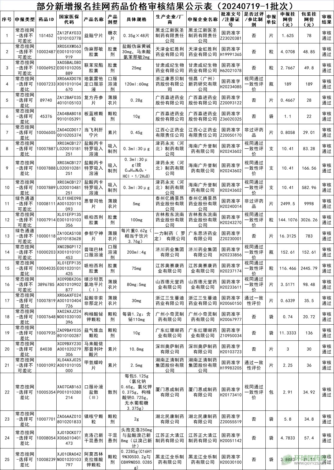 同一天,廣東省藥品交易中心還發(fā)布了《關(guān)于公示部分新增報(bào)名掛網(wǎng)藥品價(jià)格審核結(jié)果的通知(20240719-1批次)》。