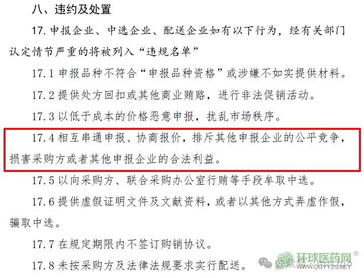 按照《采購文件》,中選企業(yè)列入“違規(guī)名單”的,取消該企業(yè)的中選資格。同時視情節(jié)輕重取消上述企業(yè)或品種在列入“違規(guī)名單”之日起2 年內(nèi)參與各地藥品集中采購活動的資格。