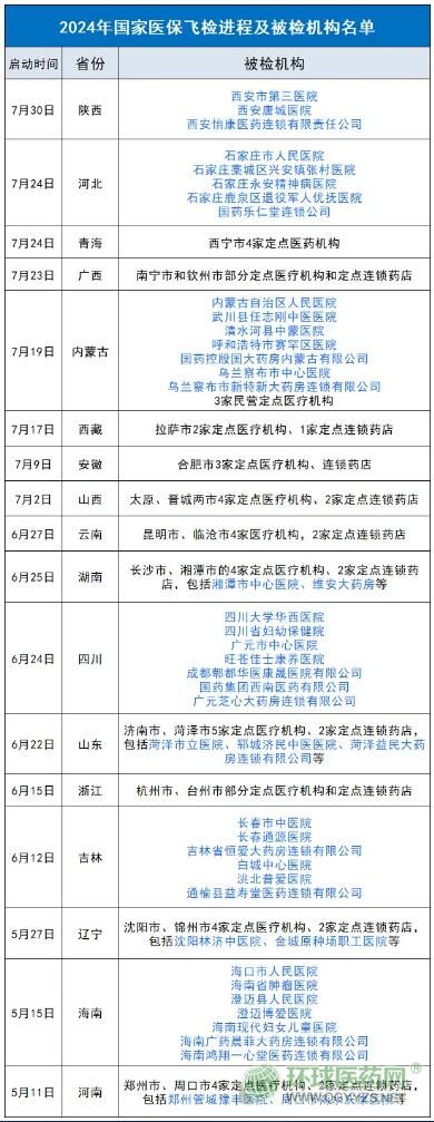 據(jù)聯(lián)盟菌不完全梳理,至此,國(guó)家飛檢組已接連落地河南、海南、遼寧、吉林、浙江、山東、四川、湖南、云南、山西、安徽、西藏、內(nèi)蒙古、廣西、青海、河北、陜西17省,并紛紛公布2024醫(yī)保飛行檢查名單。從三甲至基層,全國(guó)大批醫(yī)院被“鎖定”為待檢對(duì)象。