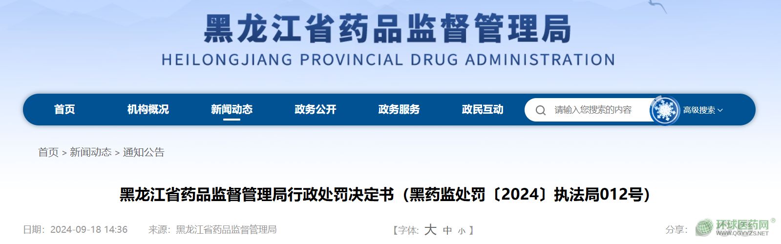 黑藥監(jiān)處罰〔2024〕執(zhí)法局012號