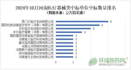 從中標單位來看,在數(shù)量方面,10月西門子醫(yī)療系統(tǒng)有限公司憑借6個中標項目蟬聯(lián)榜首,中標金額為1109.5萬元,這是下半年以來,該公司第三次中標數(shù)量位居第一,可見其在醫(yī)療器械領域的強大競爭力。