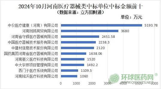 在中標總金額方面,中儀醫(yī)療健康(河南)有限公司以5193.78萬元成為10月中標總金額最高的企業(yè),這也是下半年以來,首次有企業(yè)月度中標金額超過5000萬元。