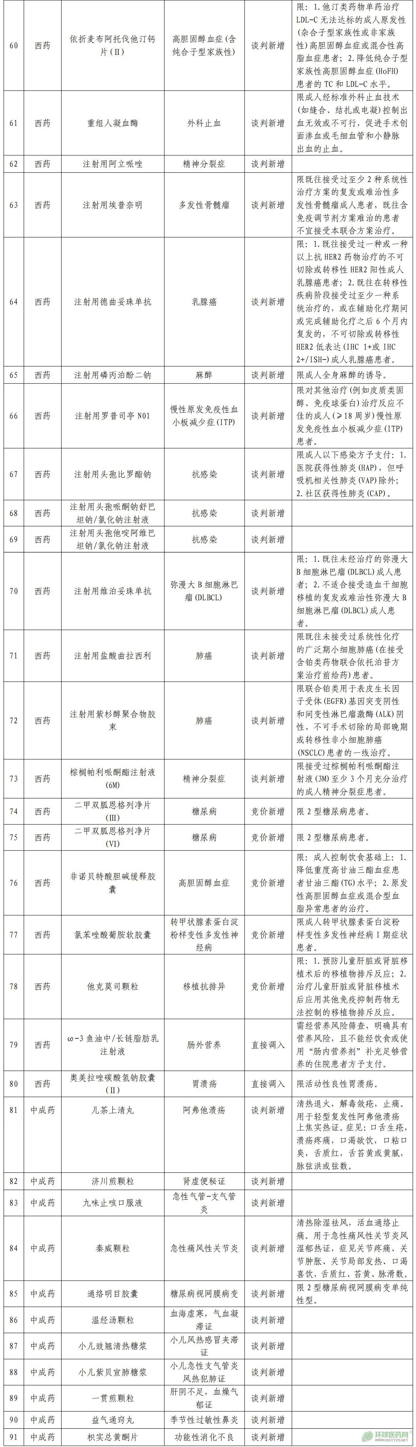 日前,國家醫(yī)保局公布了2024年新版醫(yī)保藥品目錄,新版目錄自2025年1月1日起執(zhí)行。2024年新版醫(yī)保藥品目錄共新增91種藥品,名單及主要適應(yīng)癥如下(國家醫(yī)保局)