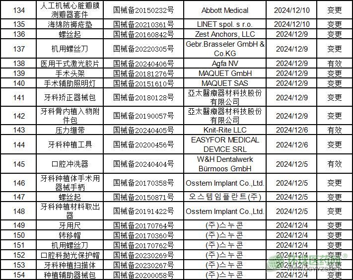 近日,國家藥監(jiān)局公布了2024年12月進(jìn)口第一類醫(yī)療器械產(chǎn)品備案信息,共167款產(chǎn)品,涉及骨科、外科、牙科、手術(shù)器械等多個(gè)科室。
