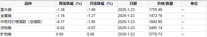 本周康美中國中藥材價(jià)格指數(shù)追蹤異動情況如下:
