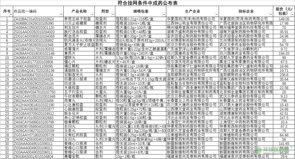 按照我省競價藥品掛網(wǎng)規(guī)定,經(jīng)企業(yè)申訴并經(jīng)進一步審核,現(xiàn)將申訴后符合掛網(wǎng)條件的中成藥公布并掛網(wǎng)。