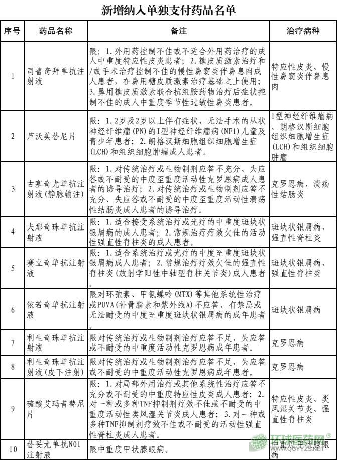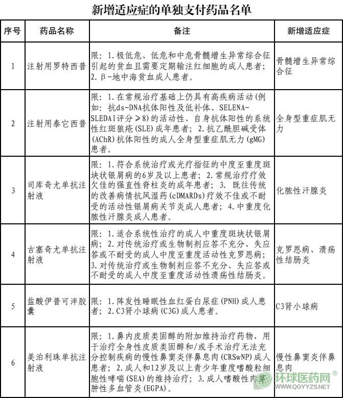 2.新增適應(yīng)癥的單獨(dú)支付藥品名單