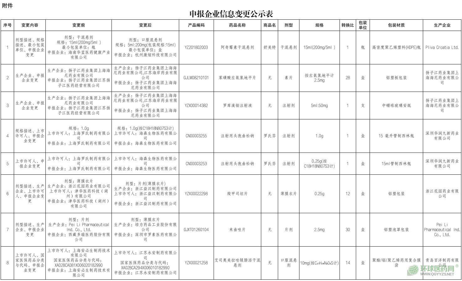 根據(jù)《江蘇省醫(yī)療保障局關(guān)于做好藥品集中采購省級入圍企業(yè)和產(chǎn)品信息變更管理工作的通知》(蘇醫(yī)保發(fā)〔2019〕51號)的要求,企業(yè)遞交的掛網(wǎng)藥品申報企業(yè)信息變更申請符合有關(guān)規(guī)定,現(xiàn)予以公示(詳見附件)。
