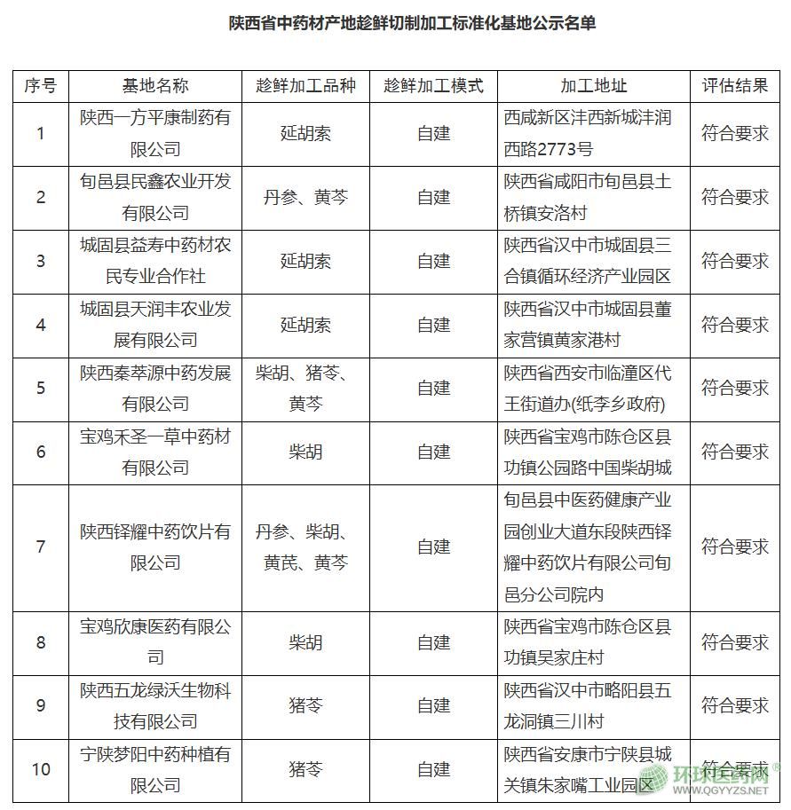 附 件:陜西省中藥材產(chǎn)地趁鮮切制加工標(biāo)準(zhǔn)化基地公示名單