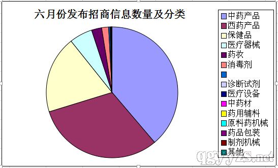 六月份,環(huán)球醫(yī)藥網(wǎng)(http://m.x4y7.cn/)新發(fā)布醫(yī)藥招商信息達到了10212條,其中發(fā)布醫(yī)藥產(chǎn)品信息主要集中在中藥產(chǎn)品、西藥產(chǎn)品、保健品及醫(yī)療器械這四大類。如下圖顯示: