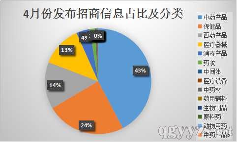 4月份,環(huán)球醫(yī)藥網(wǎng)(http://m.x4y7.cn/)新發(fā)布醫(yī)藥招商信息達(dá)到了4736條,其中發(fā)布醫(yī)藥產(chǎn)品信息主要集中在中藥產(chǎn)品、保健品、西藥產(chǎn)品及醫(yī)療器械這四大類。如下圖顯示: