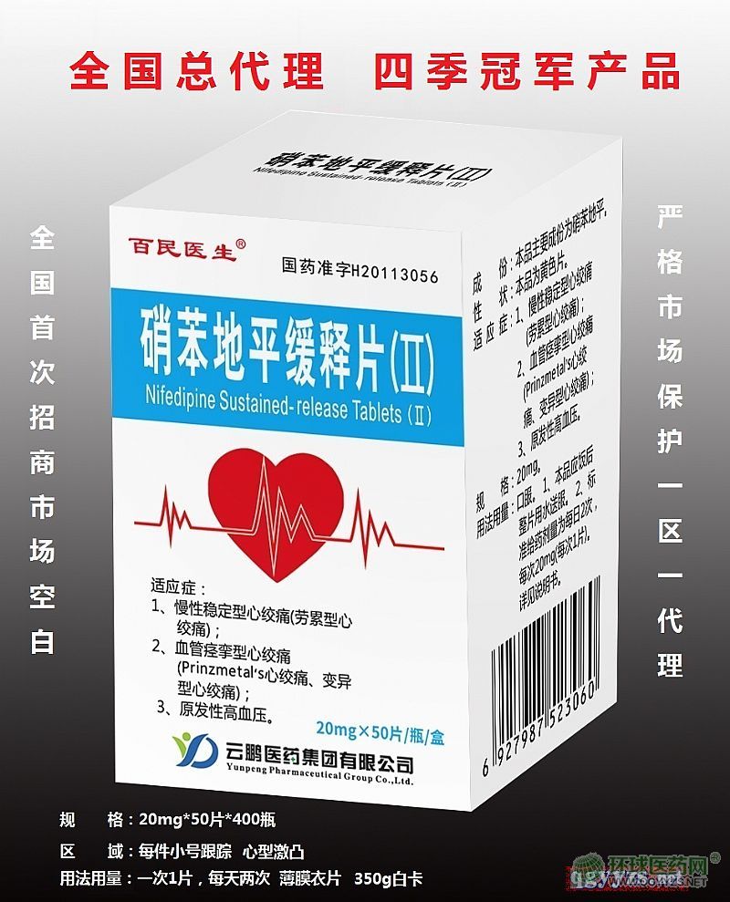 目前,河南省順康醫(yī)藥有限責(zé)任公司的硝苯地平緩釋片(Ⅱ),正在環(huán)球醫(yī)藥網(wǎng)面向全國進(jìn)行招商,有意向的代理商可通過以下方式與廠家取得聯(lián)系,洽談合作!