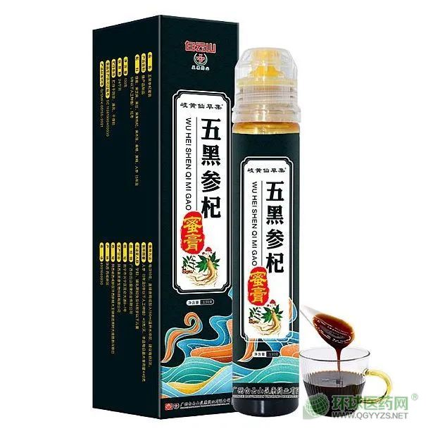 主要成分:蜂蜜、黑芝麻、黑豆、黑果枸杞、黑木耳、桑椹、黃精、人參(5年及5年以下人工種植)、紅棗。