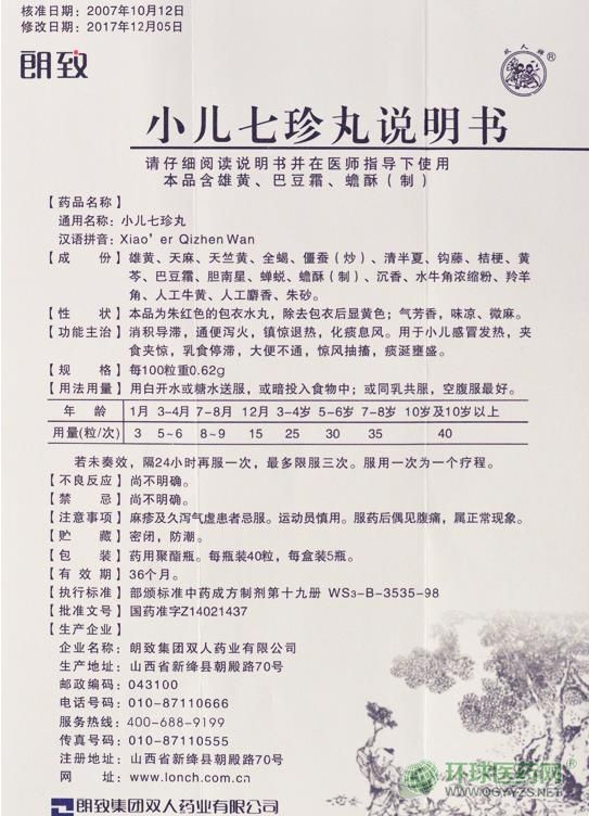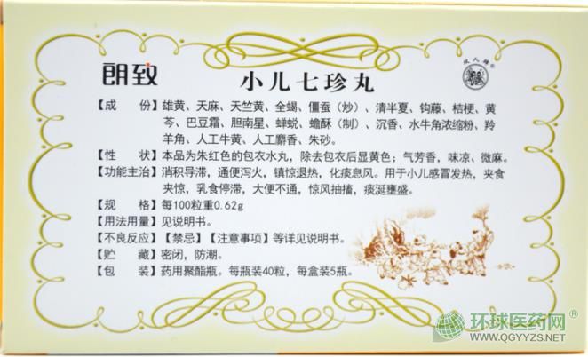 【藥品名稱】 通用名稱:小兒七珍丸