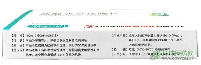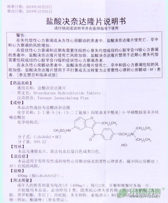 【藥品名稱】通用名稱:鹽酸決奈達(dá)隆片