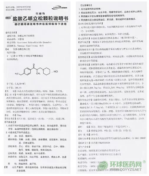 【藥品名稱】通用名稱:鹽酸乙哌立松片