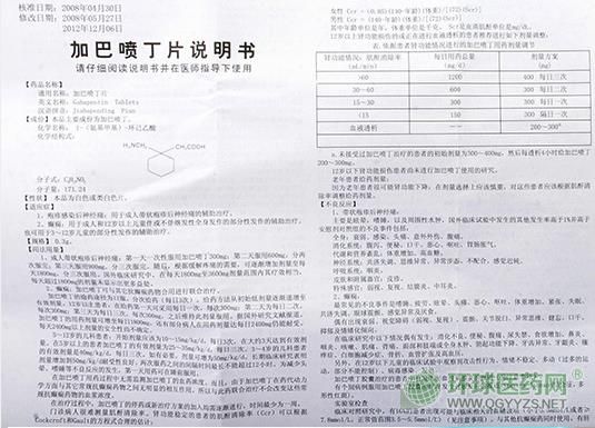 【藥品名稱】通用名稱:加巴噴丁片
