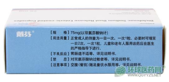 雙氯芬酸鈉雙釋放腸溶膠囊(戴芬)外包裝