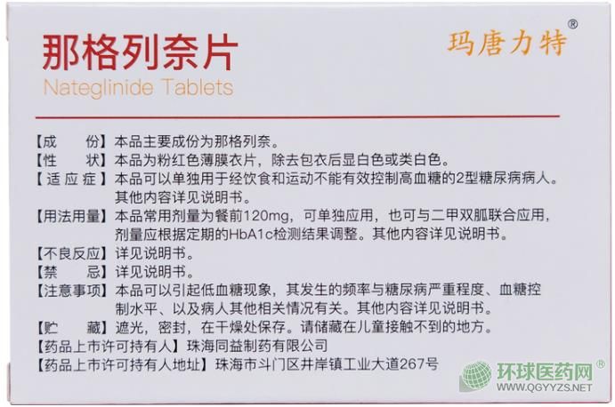 同益(瑪唐力特)那格列奈片外包裝