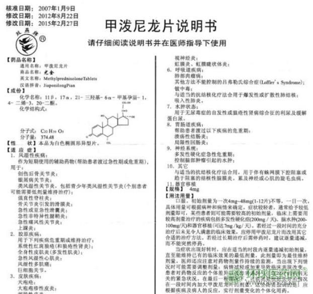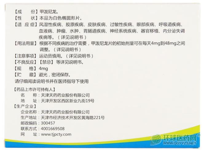 天津天藥尤金甲潑尼龍片說(shuō)明書(shū)圖片版