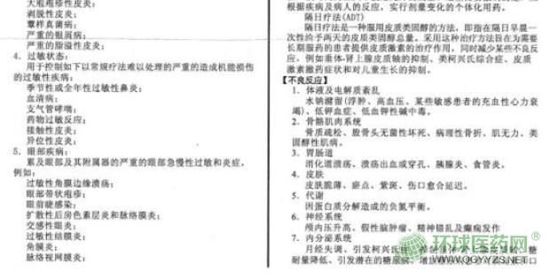 【不良反應(yīng)】 1.體液及電解質(zhì)紊亂:常規(guī)和高劑量的氫化可的松和可的松可產(chǎn)生鹽皮質(zhì)激素作用,除非在高劑量下,合成類(lèi)衍生物很少發(fā)生類(lèi)似作用。限鈉、補(bǔ)鉀的飲食可能是必要的,所有類(lèi)固醇類(lèi)藥物都增加鈣的排泄。如鈉潴留、某些敏感患者的充血性心力衰竭、高血壓、體液潴留、鉀離子喪失、低鉀性堿中毒。 2.肌肉骨骼系統(tǒng):類(lèi)固醇性肌病、肌無(wú)力、骨質(zhì)疏松:骨質(zhì)疏松是與長(zhǎng)期大劑量使用糖皮質(zhì)激素有關(guān)的常見(jiàn)且不易察覺(jué)的不良反應(yīng)。無(wú)菌性壞死、壓迫性椎骨骨折、病理性骨折。 3.胃腸道:可能穿孔或出血的消化道潰湯、消化道出血、胰腺炎、食管炎、腸穿孔 4.皮膚病:傷口愈合延遲、瘀點(diǎn)和瘀斑、皮膚脆薄 5.代謝:因蛋白質(zhì)分解造成的負(fù)氮平衡 6.神經(jīng)系統(tǒng):顱內(nèi)壓升高、假性腦腫瘤。 精神錯(cuò)亂:使用皮質(zhì)類(lèi)固醇可產(chǎn)生的精神紊亂包括:欣快感,失眠,情緒不穩(wěn),個(gè)性改變,嚴(yán)重抑郁甚至明顯的精神病表現(xiàn)。 癲癇發(fā)作、眩暈 7.內(nèi)分泌:月經(jīng)失調(diào)、引發(fā)柯興氏癥、抑制垂體-腎上腺皮質(zhì)軸、糖耐量降低、引發(fā)潛在的糖尿病、增加糖尿病患者對(duì)胰島素和口服降糖藥的需求、抑制兒童生長(zhǎng) 8.過(guò)敏反應(yīng):血管水腫 9.眼:長(zhǎng)期使用糖皮質(zhì)激素可引發(fā)后房囊下白內(nèi)障、青光眼和可能損傷視神經(jīng),并增加眼部繼發(fā)真菌或病毒感染的機(jī)會(huì)。為防止角膜穿孔,糖皮質(zhì)激素慎用于眼部單純皰疹患者。眼內(nèi)壓增高、眼球突出 10.心血管:高劑量引起心動(dòng)過(guò)速。 11.免疫系統(tǒng):掩蓋感染、潛在感染發(fā)作、機(jī)會(huì)性感、過(guò)敏反應(yīng)、可能抑制皮試反應(yīng)。 12.呼吸異常:高劑量皮質(zhì)類(lèi)固醇引起持續(xù)性呃逆。