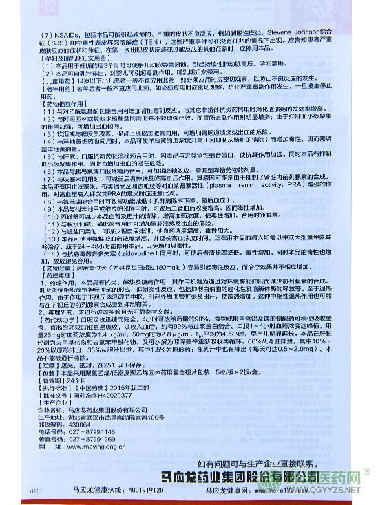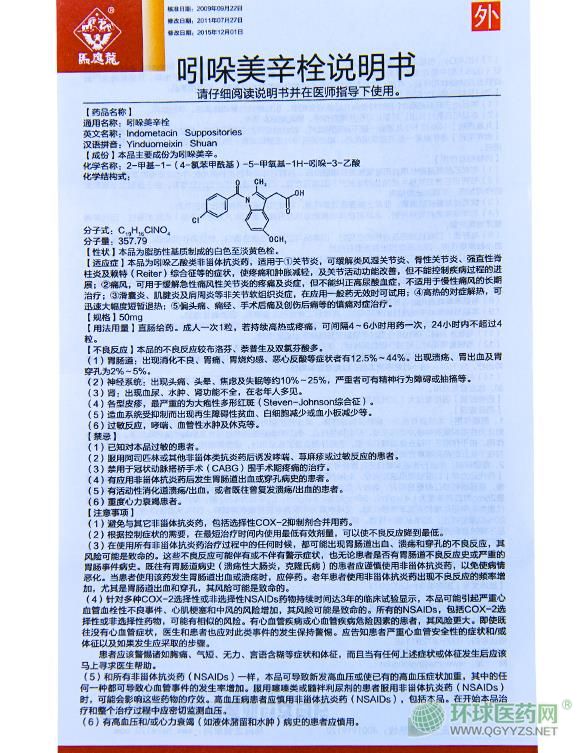 馬應(yīng)龍吲哚美辛栓說(shuō)明書圖片版
