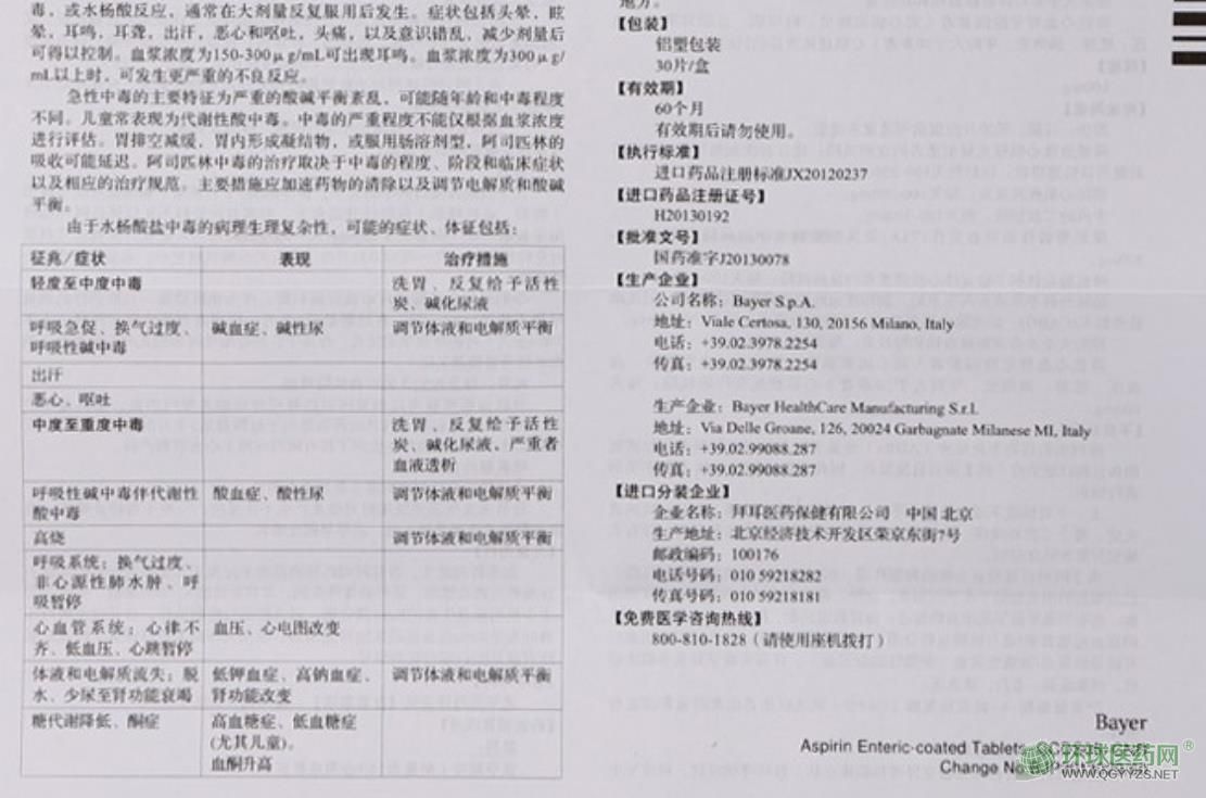 拜阿司匹靈阿司匹林腸溶片說(shuō)明書圖片版