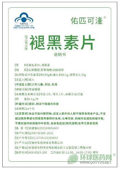 【標(biāo)志性成分及含量】每100g含維生素B6 1g,褪黑素0.35g.