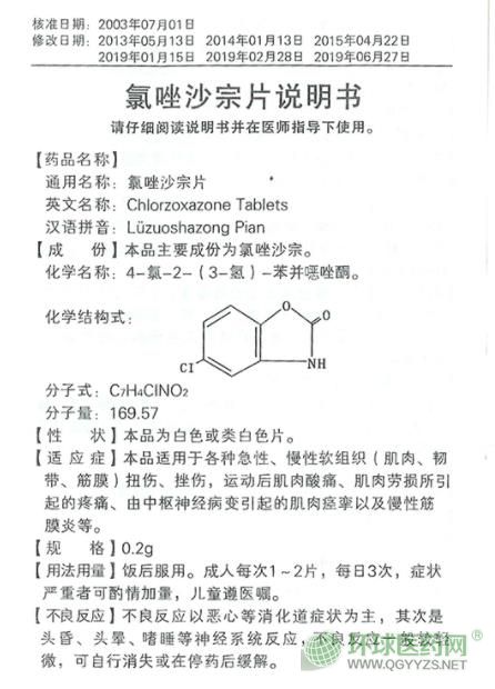 【藥品名稱】通用名稱:氯唑沙宗片