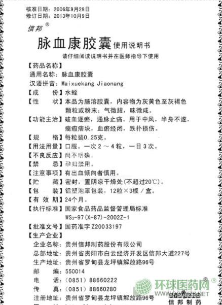 信邦脈血康膠囊說明書文字版