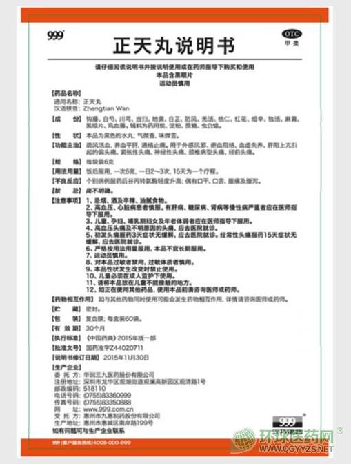 999正天丸(三九)說明書文字版