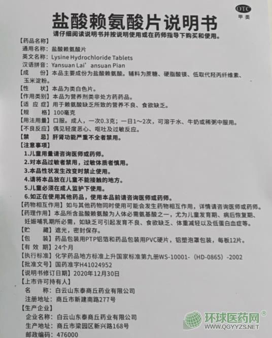 【藥理作用】本品所含鹽酸賴氨酸為人體必需氨基酸之一,尤為兒童發(fā)育期、病后恢復(fù)期、妊娠哺乳期所必需,如缺乏可引起發(fā)育不良、食欲缺乏、體重減輕以及低蛋白癥等。