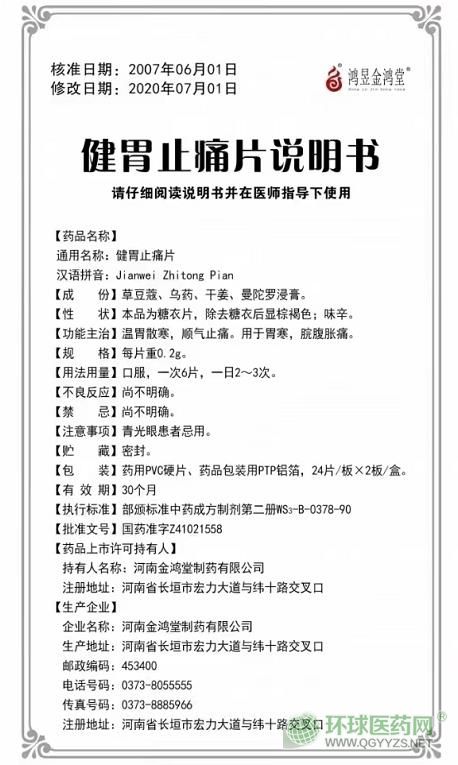 金鴻堂健胃止痛片說(shuō)明書圖片版