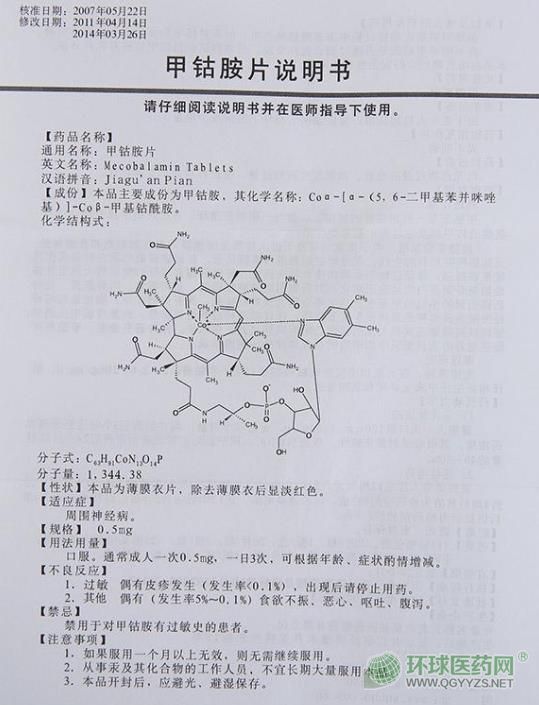 藥品名稱通用名稱:甲鈷胺片