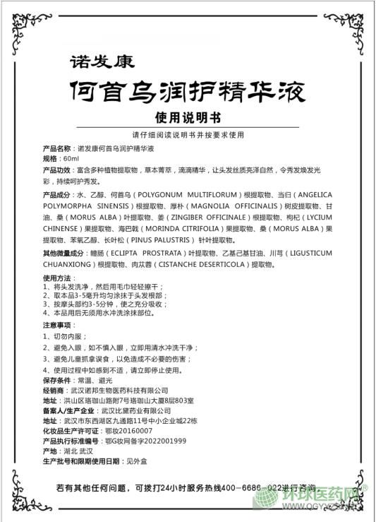 產(chǎn)品名稱:諾發(fā)康何首烏潤護精華液